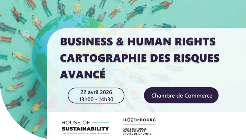 La House of Sustainability a le plaisir de vous inviter à notre prochaine édition du Business and Human Rights Breakfast qui traitera la thématique de la « cartographie de risques », qui aura lieu le 22 avril 2026 de 12h00 à 14h30 à la Chambre de Commerce.