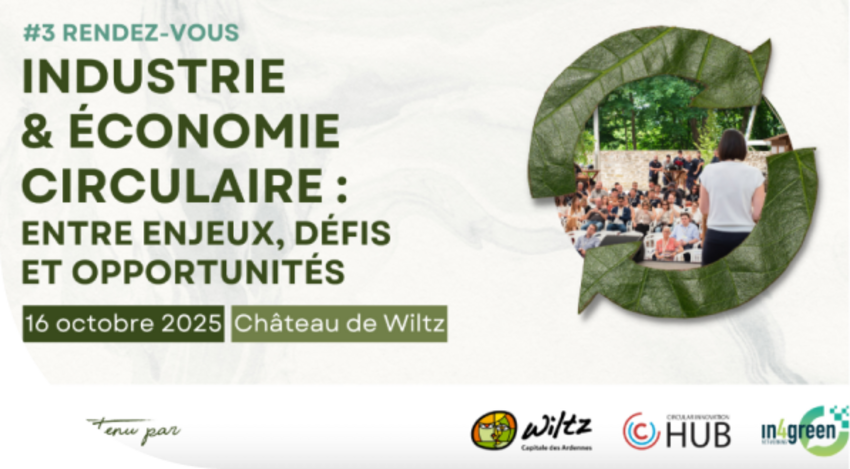 La commune de Wiltz, le Circular Innovation Hub et In4Green, le réseau des partenaires Infogreen en action, ont le plaisir de vous inviter au dernier rendez-vous de l'année dédié à l’économie circulaire, avec pour cette rencontre un focus sur la circularité dans l'industrie.