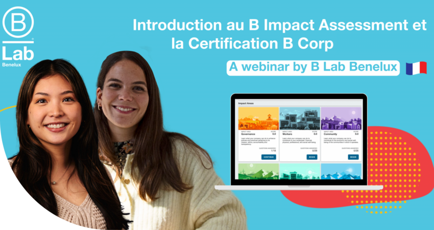 Rejoignez-nous pour le webinaire sur le B Impact Assessment en Français ! L'équipe de B Lab Benelux vous présentera le mouvement B Corp, la certification B Corp, et répondra à toutes vos questions au sujet de notre outil d'évaluation d'impact accessible gratuitement, en ligne.