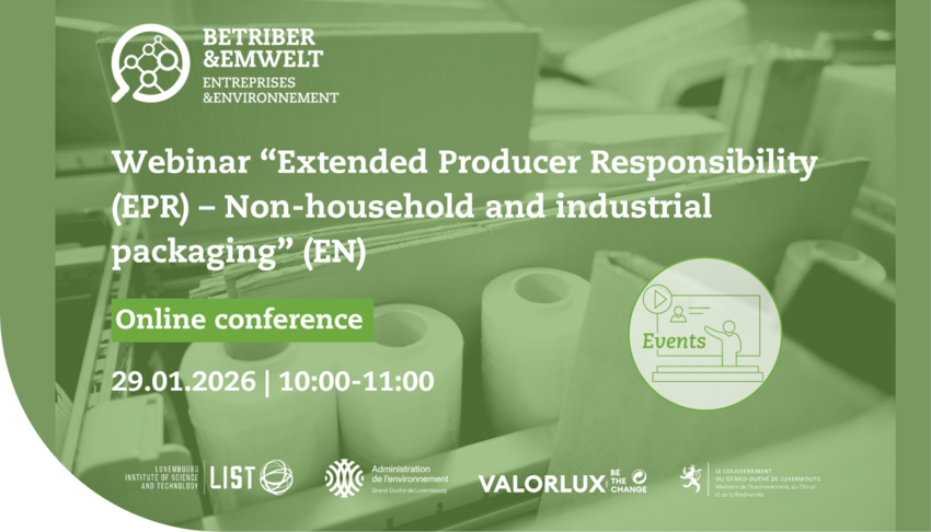 The Betriber & Emwelt platform, in collaboration with the Environment Agency (AEV) and Valorlux, is organising a webinar on the implementation of the extended producer responsibility (EPR) scheme specific to non-household packaging.